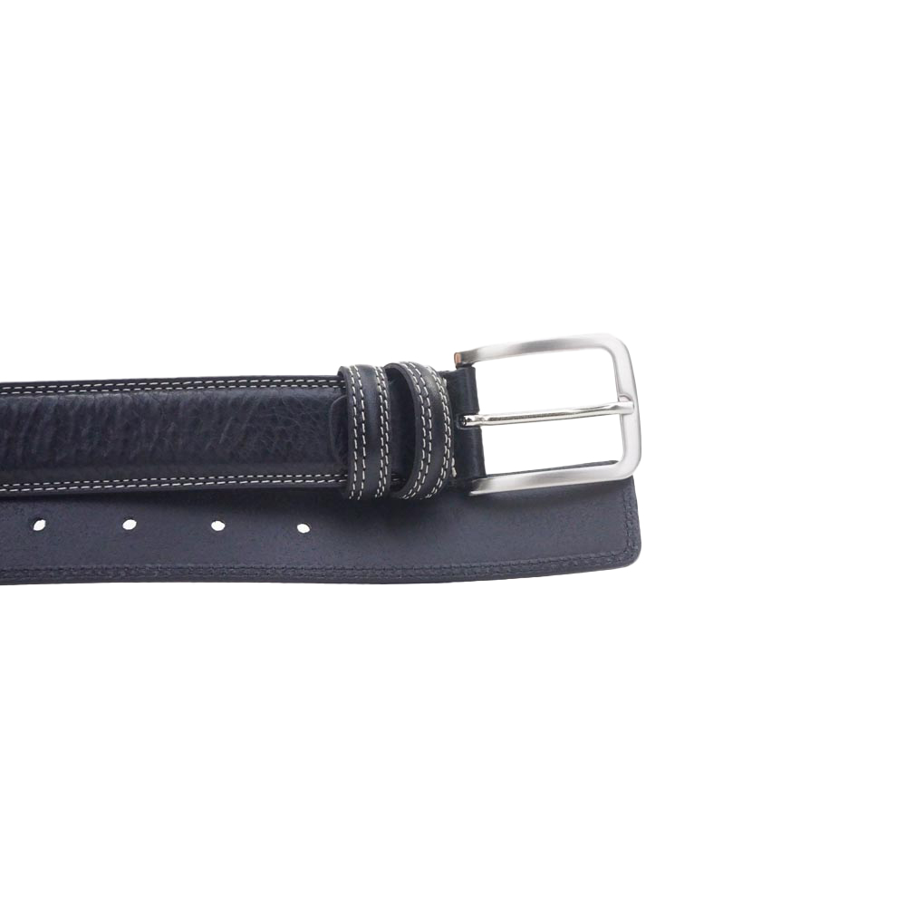 Contrasting color double seam leather belt, 35 mm. Made in Italy.